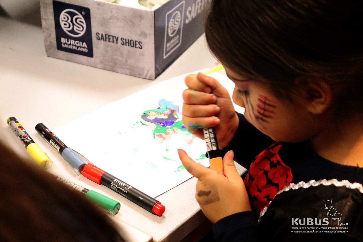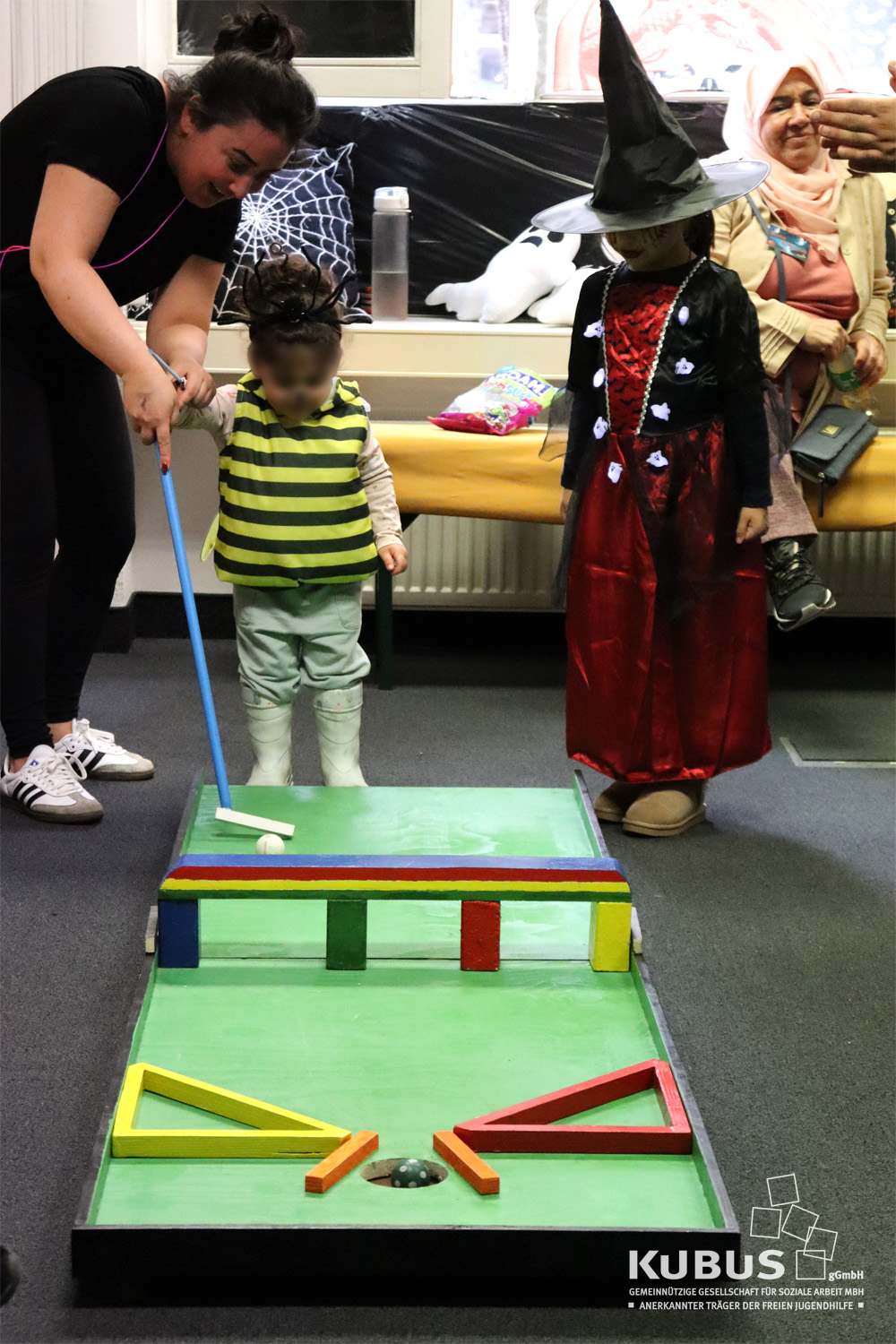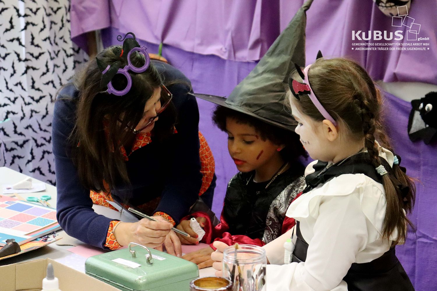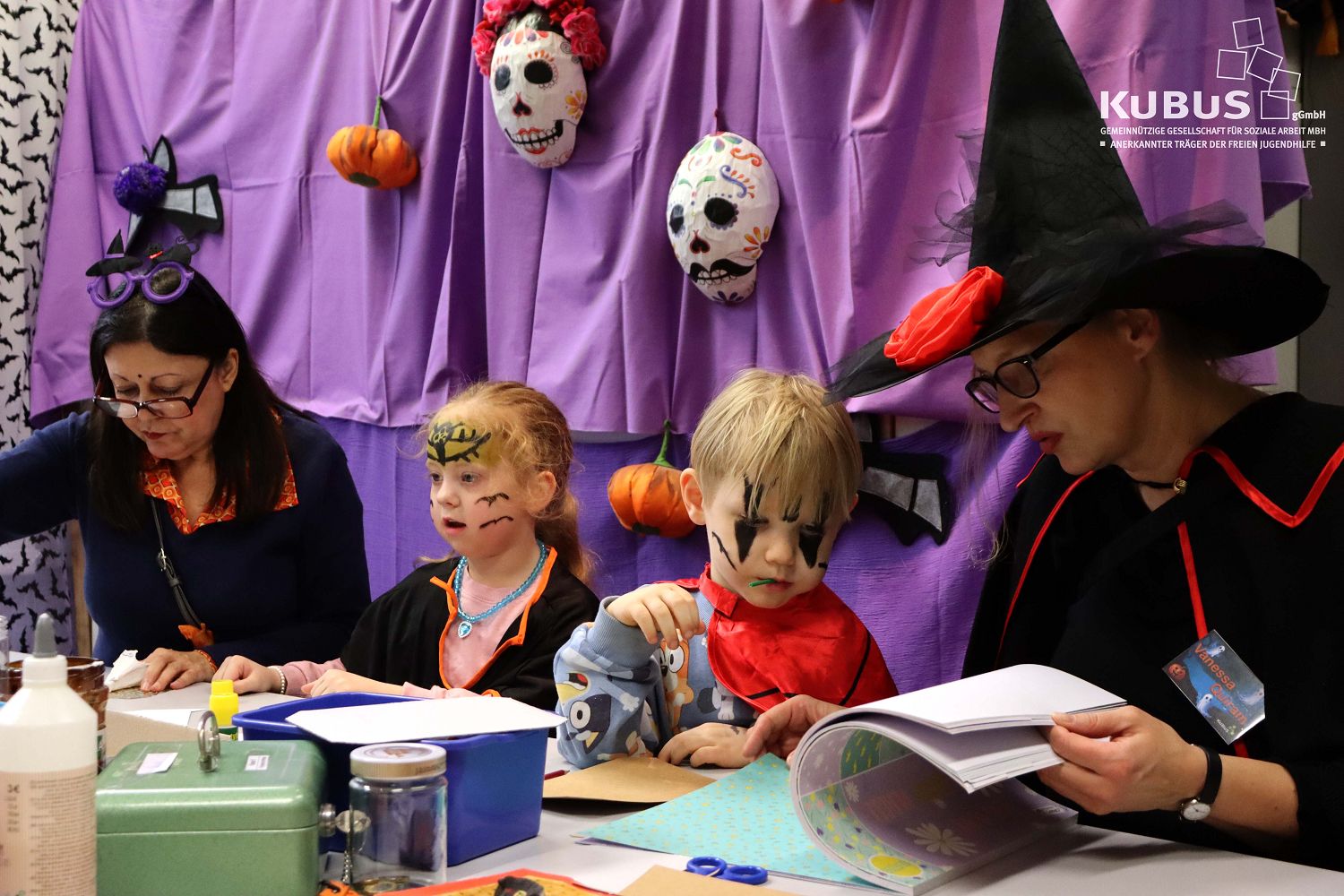 Am Nachmittag des 31. Oktober verwandelten sich unsere Werkstätten in der Aroser Allee in ein Gruselkabinett voller schaurig-schöner Überraschungen. Über 300 Kinder und Eltern folgten der Einladung zu unserer großen Halloween-Party und erschienen in fantasievollen Kostümen; von niedlichen Kürbissen bis hin zu furchteinflößenden Zombies war alles vertreten. Wer keine Verkleidung hatte, konnte sich aus unserem großen Kostümfundus etwas Schönes ausleihen.
