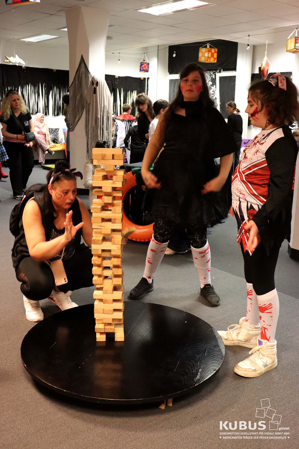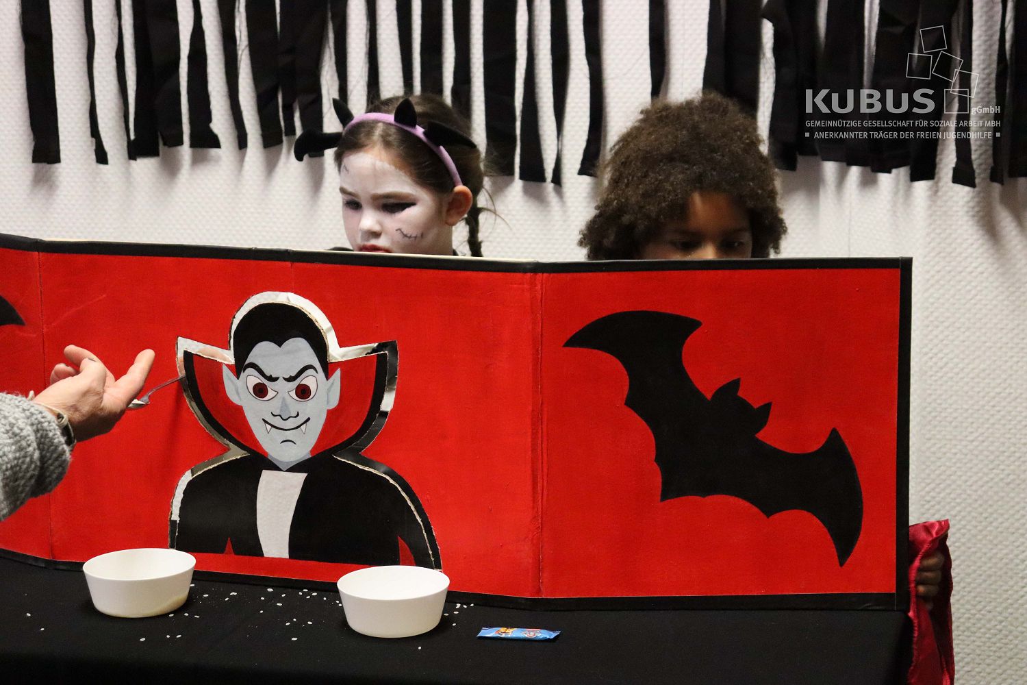 Eines der großen Highlights war sicher unsere Disko „Tanz der Vampire“, wo kleine und große Tanzmäuse sich so richtig verausgaben konnten. Um die Energie der kleinen Geister hochzuhalten, gab es Süßes, Deftiges oder Saures, in jedem Fall aber etwas leckeres zu essen und trinken.