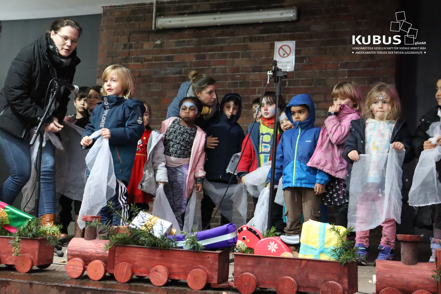 Am liebsten würden wir jede Woche so ein herrliches Fest veranstalten wie unseren Nikolausmarkt. Am Vormittag besuchten uns zunächst 160 Kinder aus umliegenden Kitas. Die Nikolaus kam wie immer für uns etwas eher und wir haben zusammen Plätzchen versüßt, es wurde geschminkt, gespielt und getobt. Highlight in diesem Jahr war sicher eine Skipiste, die wir für die Kids vorbereitet hatten. Die Skier und das Ambiente haben unsere Kreativteams gefertigt, für den Spaß sorgten die Kids schon selbst und wollten gar nicht wieder weg.