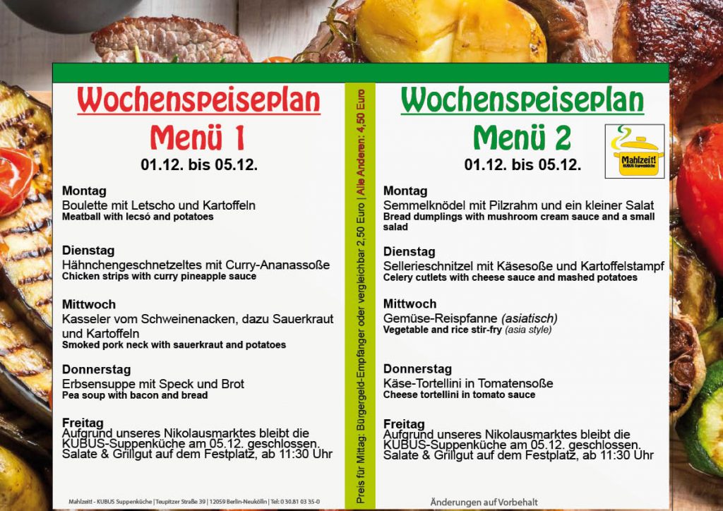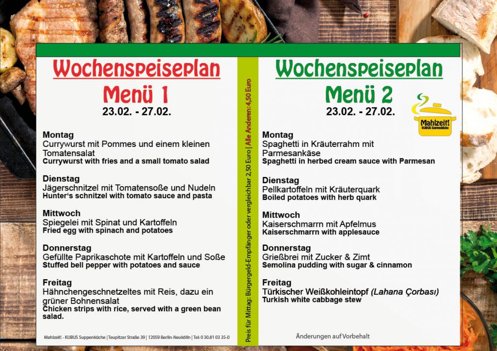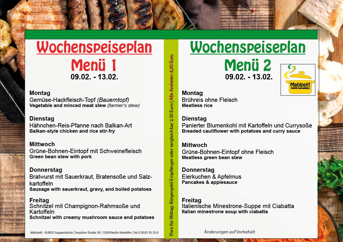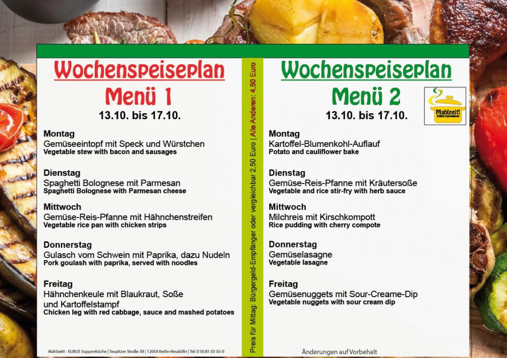 Ein Mittagessen für Bürgergeld-Empfänger oder Geringverdiener oder Rentner*innen mit geringem Einkommen kostet bei uns 2,50 €.