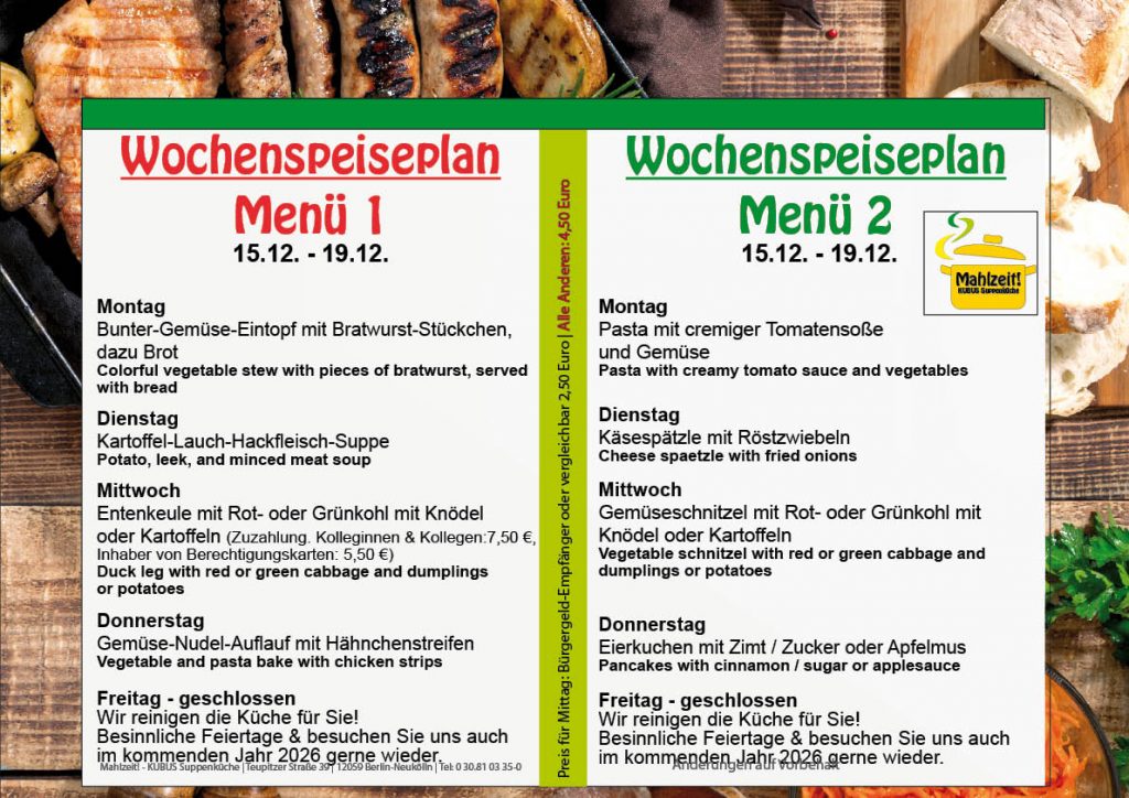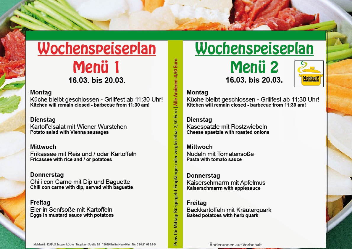Wir danken darüber hinaus dem Jobcenter Neukölln von Berlin und dem Land Berlin für die Unterstützung. Durch sie werden Mitarbeiter*innen der Suppenküche gefördert